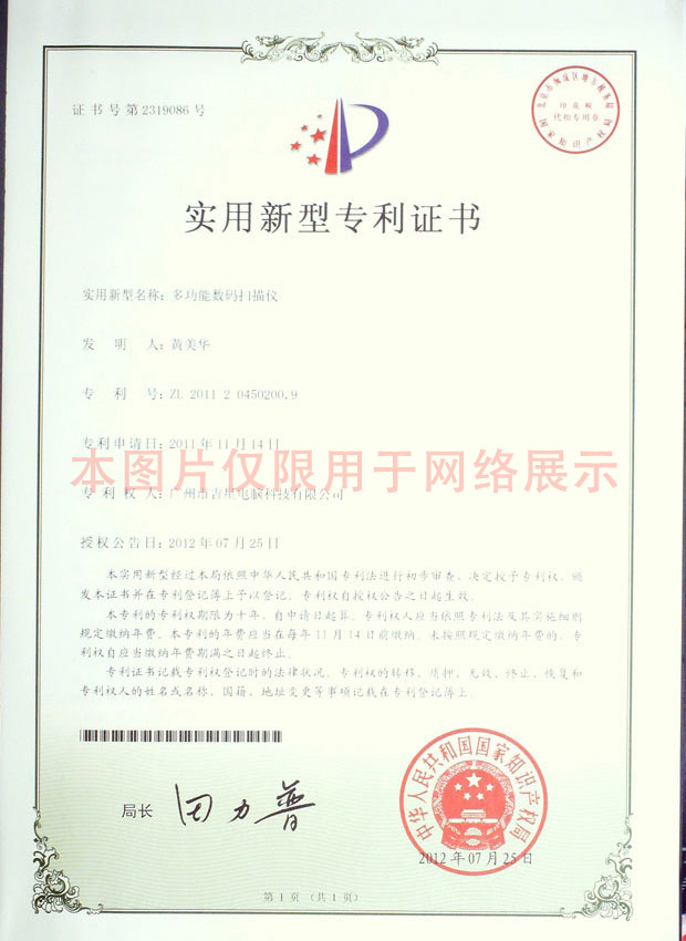 實用新型證書--多功能數(shù)碼掃描儀