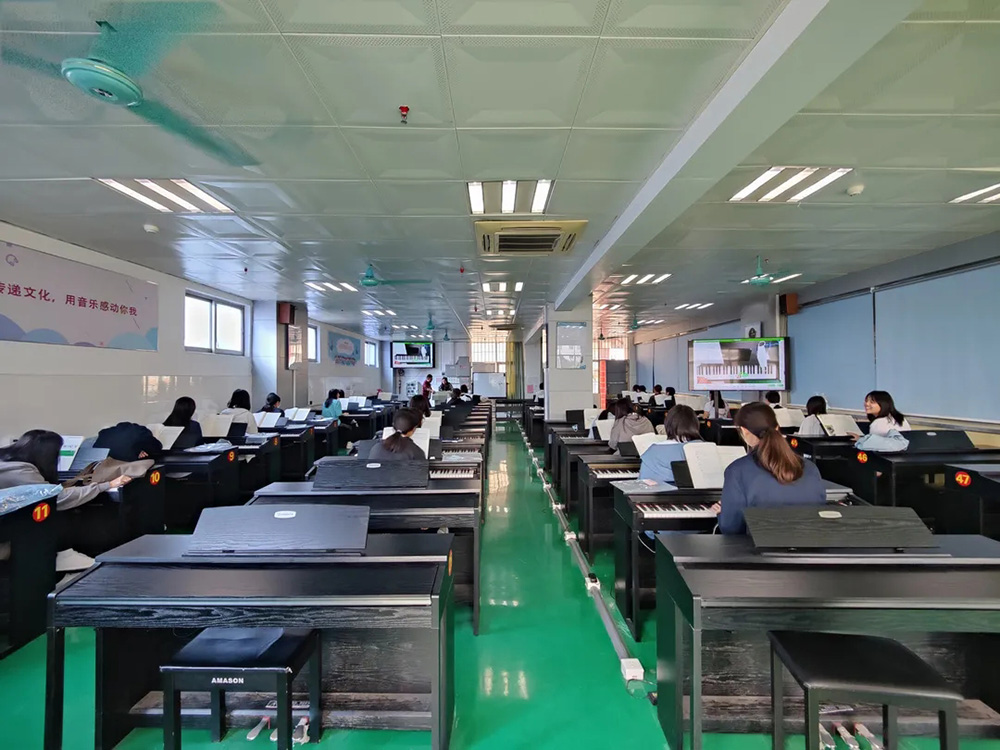 通過無線傳輸,教師的彈奏過程和細節(jié)能夠清晰展示在大屏上,全體學生無需圍觀,即可觀看。
